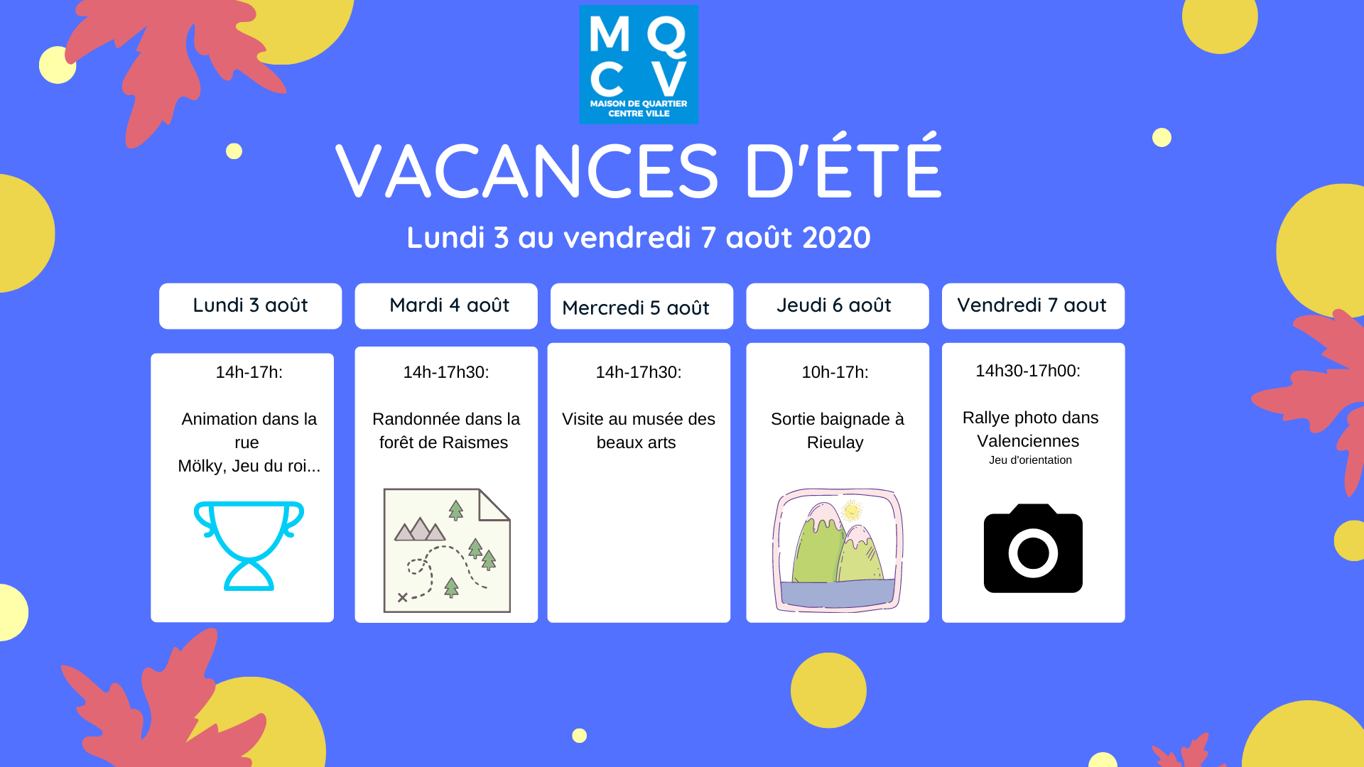 Été 2020 : Valenciennes, ton terrain de jeux ! Hélène M.2 juillet 20200 Renaud, Christophe, Kaëlig seront dans la rue, avec l’équipe du Club de Prévention ! Au menu : des sorties, des jeux, des activités, du dynamisme, de la convivialité, bref de quoi passer de belles journées avec les copains du 3 au 7 août du 10 au 14 août du 17 au 21 août du 24 au 28 août