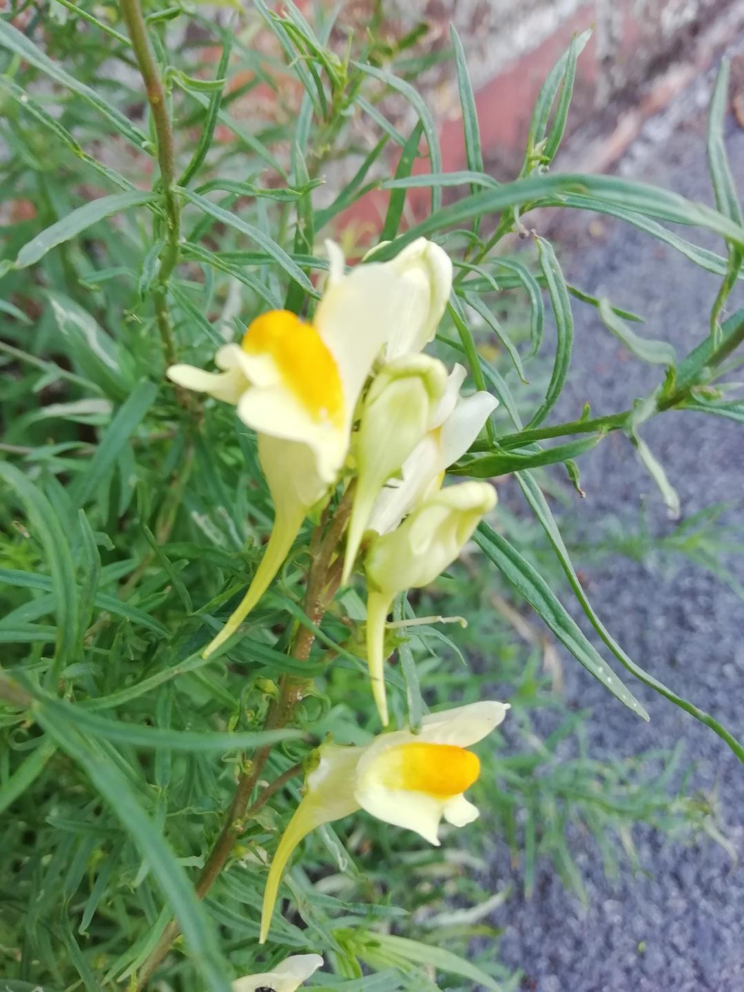S’arrêter pour admirer cette fleur et ne plus repartir : voilà le risque 🙂 ! Elle pousse sur les talus, dans les prairies, les vieux murs… et donc les trottoirs : c’est la Linaria vulgaris Mill., récemment reclassée dans la famille des Plantaginaceae. On voudra bien considérer « vulgaris » pour traduire « commune », et surtout pas vulgaire !