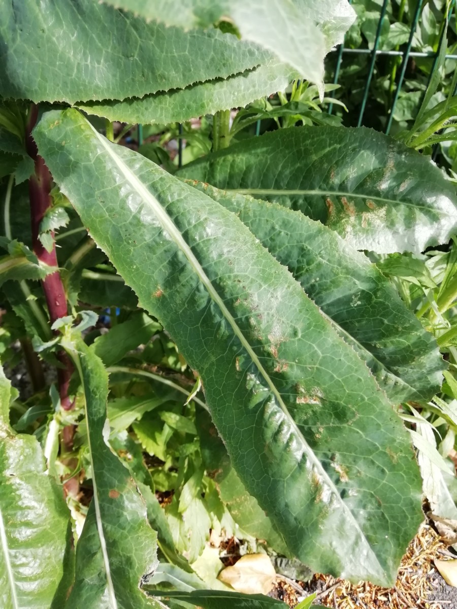 La forme de ses feuilles est parfois très différente d’une plante à l’autre, et, lorsqu’on en observe le dessous, on constate que la nervure médiane est hérissée de poils bien dressés et piquants. C’est la Godzilla de nos trottoirs ! Cette curieuse nature est aussi une plante dite « boussole » qui oriente ses feuilles dans l’axe nord-sud pour éviter la brûlure du soleil : on peut ainsi en observer parfois la position verticale.