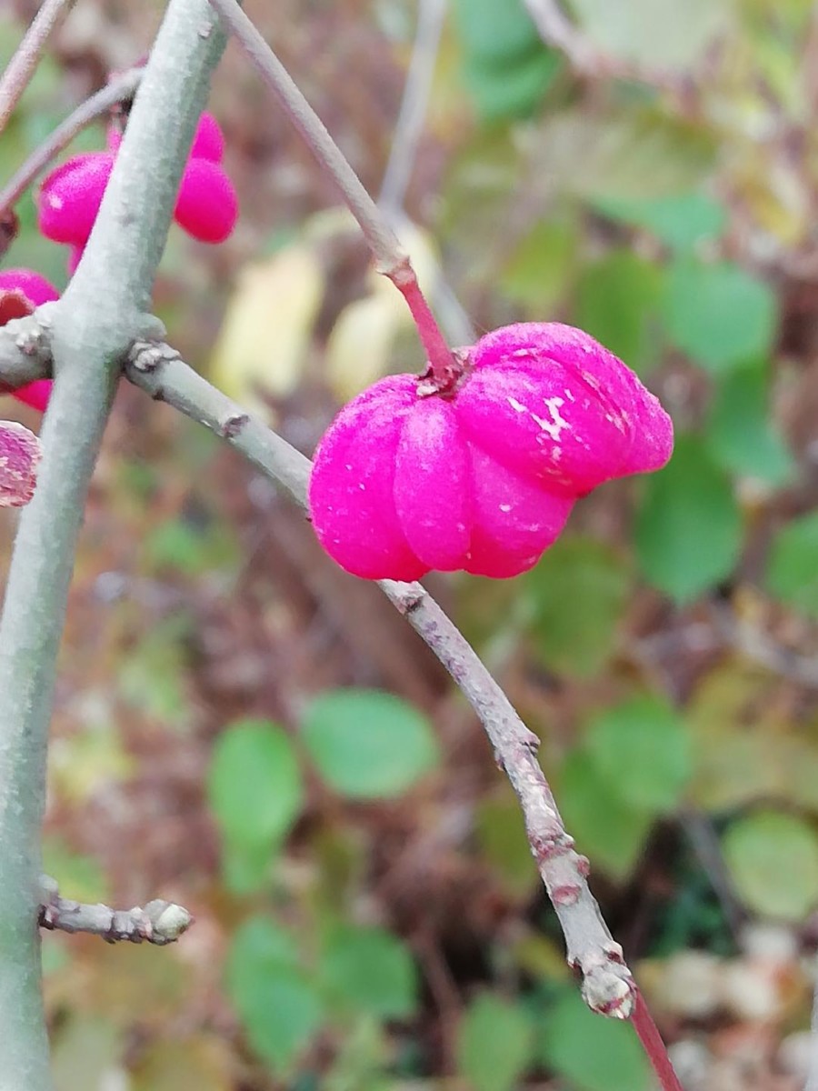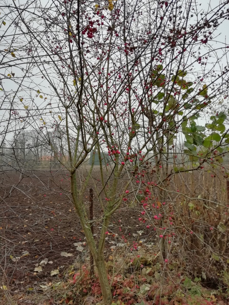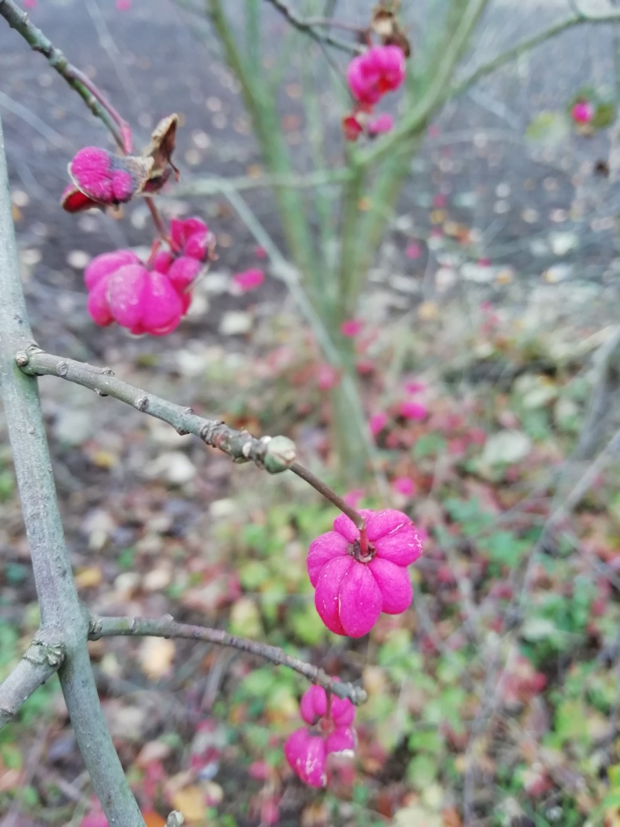 Voici un arbuste sauvage, Euonymus europaus L., apprivoisé / apprivoisable dans les jardins car très joli, notamment en automne où il nous séduit avec ses fruits en capsule rose fuschia s’ouvrant pour libérer les graines orange fluo. Il est rustique et se plaît un peu partout, au grand soleil ou à la mi-ombre, mais ne vit pas très longtemps. Attention cependant : cette beaugossitude cache une toxicité avérée par alcaloïdes et hétérosides !! A l’approche de l’hiver, nos amis les oiseaux, eux, en font un mets de choix.