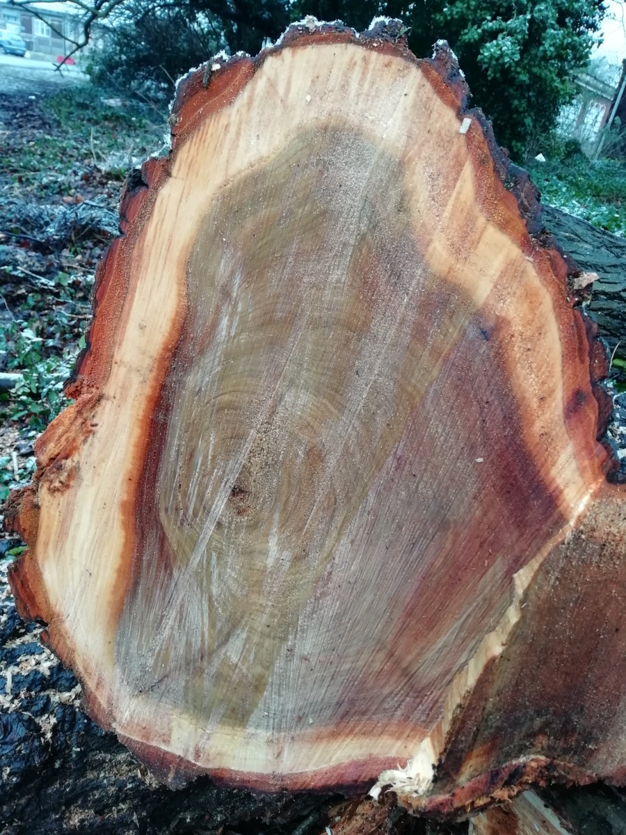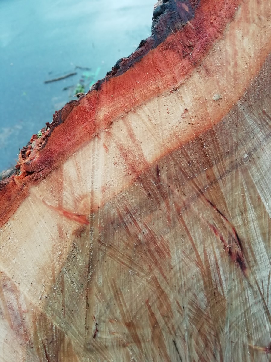 La balade du jour nous fait croiser un arbre débité, ce qui nous permet de distinguer les différentes couches de croissance.