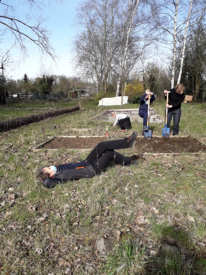 Quelques photos du jardin qui commence à prendre forme, et des jardiniers qui commencent à prendre l’air !!
