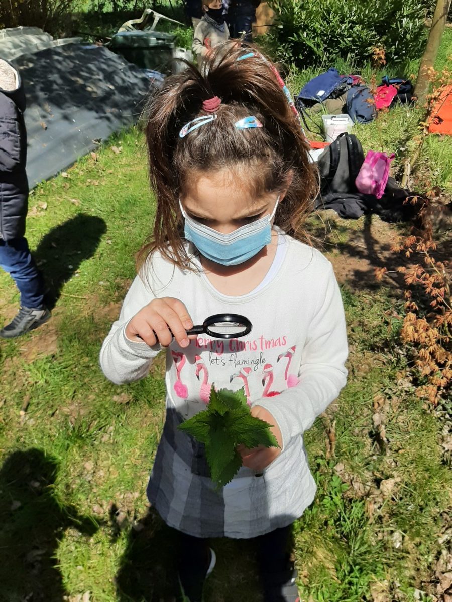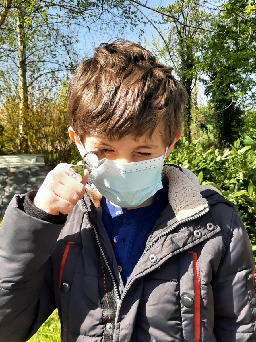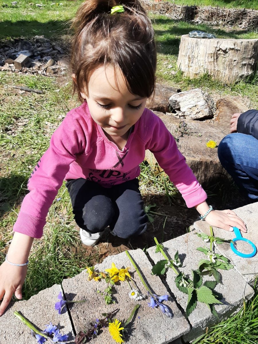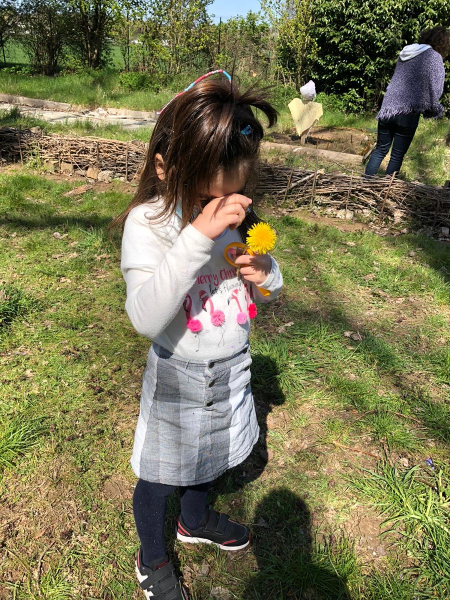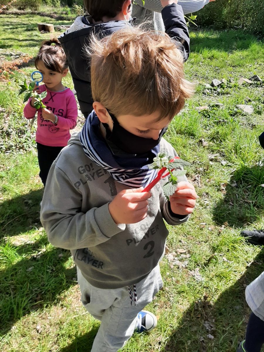 Le soleil était avec nous pour cette après-midi du jeudi 22 avril. Allez hop, direction parcelle de la Maison de Quartier, pour une première découverte des fleurs de près, de très près ! Munis de loupes à manche et de loupes de botaniste, s’il vous plaît, les enfants ont fait connaissance avec les Lamiaceae, avec les étamines, les anthères, les feuilles opposées et décussées… que de mots nouveaux, et peu importe si on ne les retient pas tout de suite !