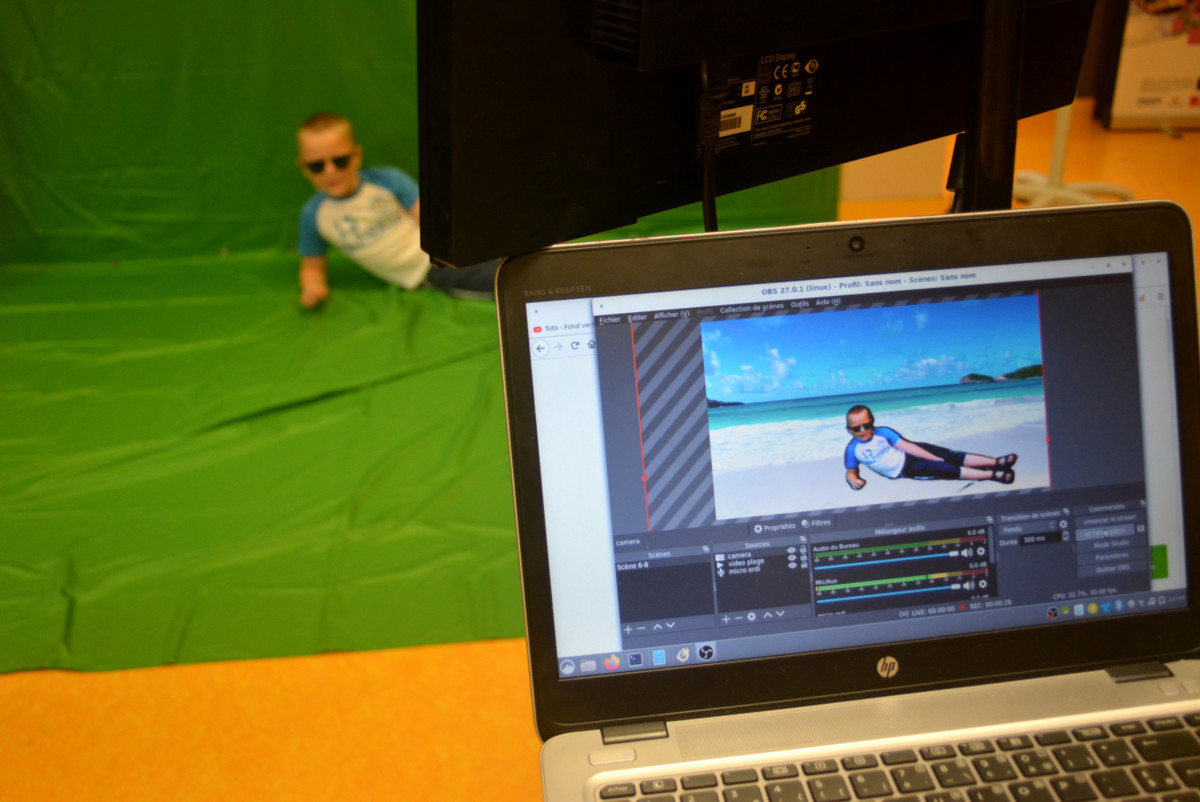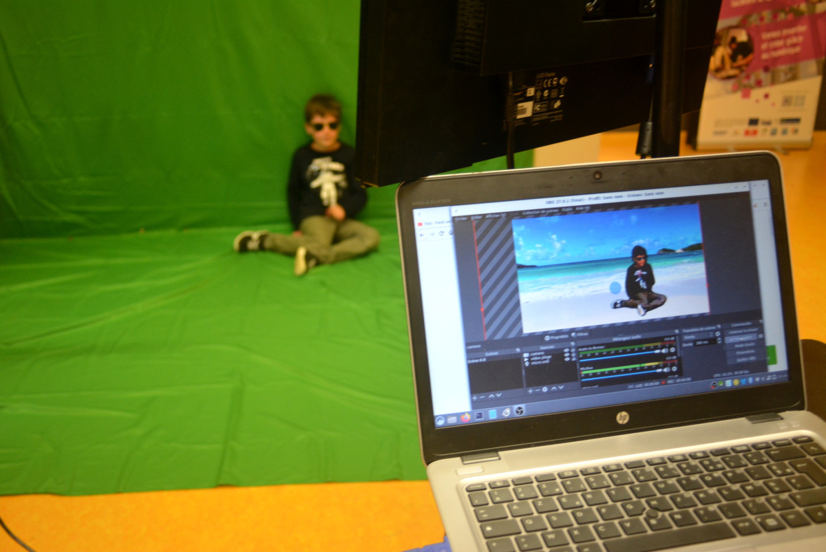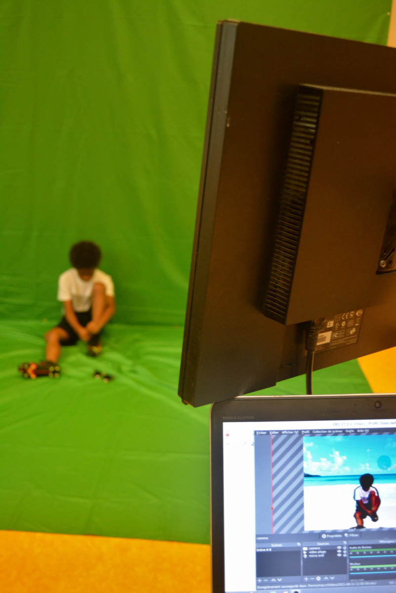 Bon nous sommes d’accord, cette couleur laisse à désirer mais elle nous sera utile pour des réalisations dignes des films de Spielberg (toujours viser grand) ou révélatrice de talents de présentateurs(trices). Voici un nouvel arrivant : le fond vert ! C’est le groupe des 6-8 ans qui a prolongé ses vacances à la mer… depuis la MQCV ! ![]()