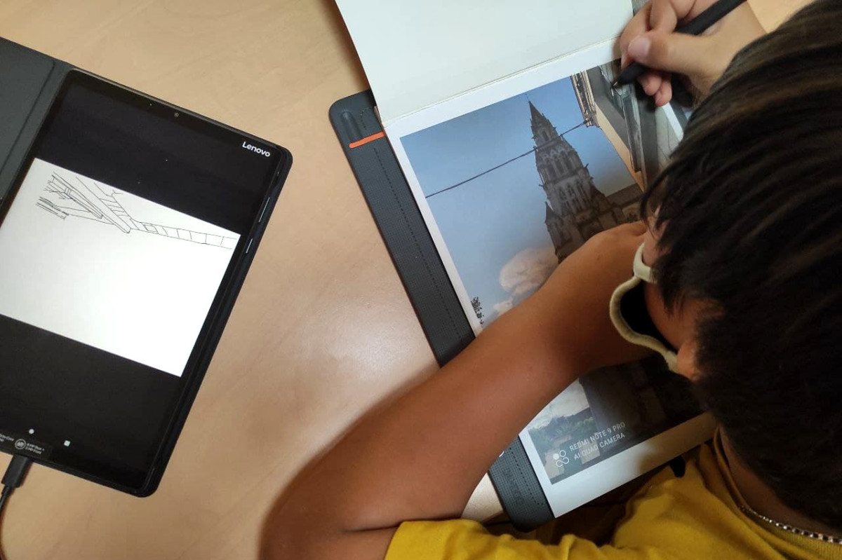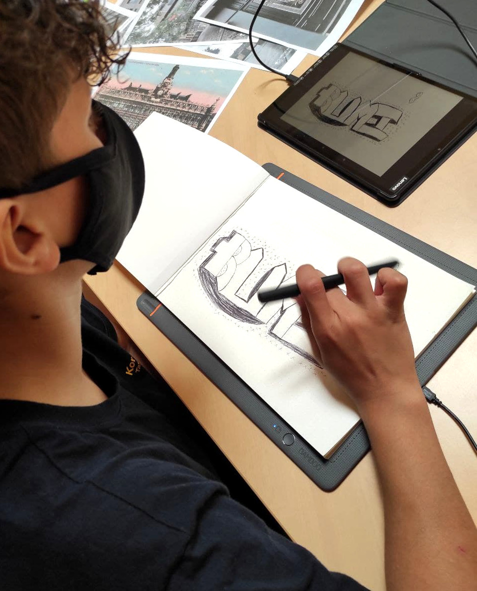 Et voici 2 tablettes graphiques sur lesquelles le groupe des 8-13 ans a exprimé sa créativité (tags, dessins…) ou utilisé des modèles en lien avec le patrimoine de la ville. Le groupe s’est également initié à la retouche photo avec les changements de couleur, de contraste et les dessins sur des photos prises dans la ville.