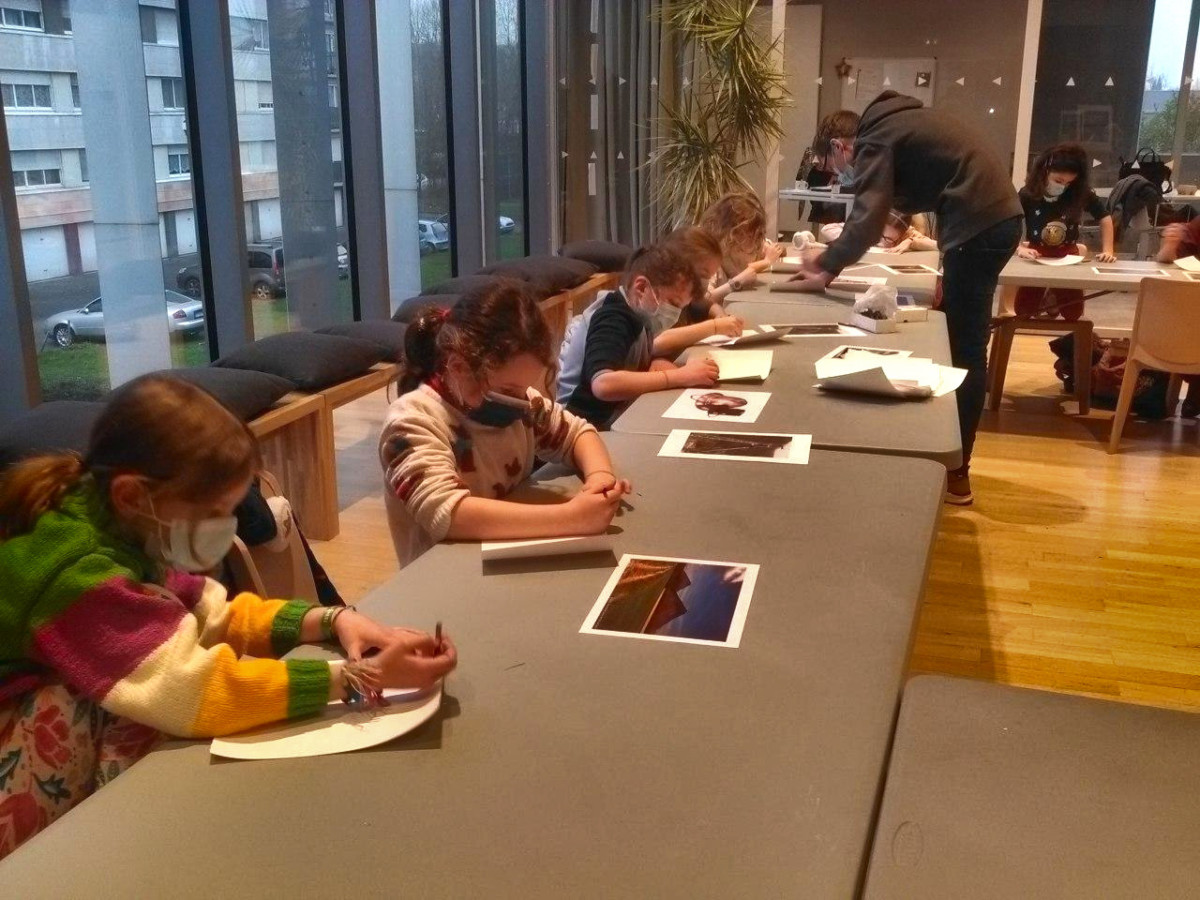 un musée numérique sur le thème « Le Nord » avec la braderie, les mines, les géants et des oeuvres présentées sur tablette ainsi des puzzle numérique à réaliser. Ensuite, les enfants ont pu s’initier au fusain pour réaliser de petits dessins toujours dans le même thème.