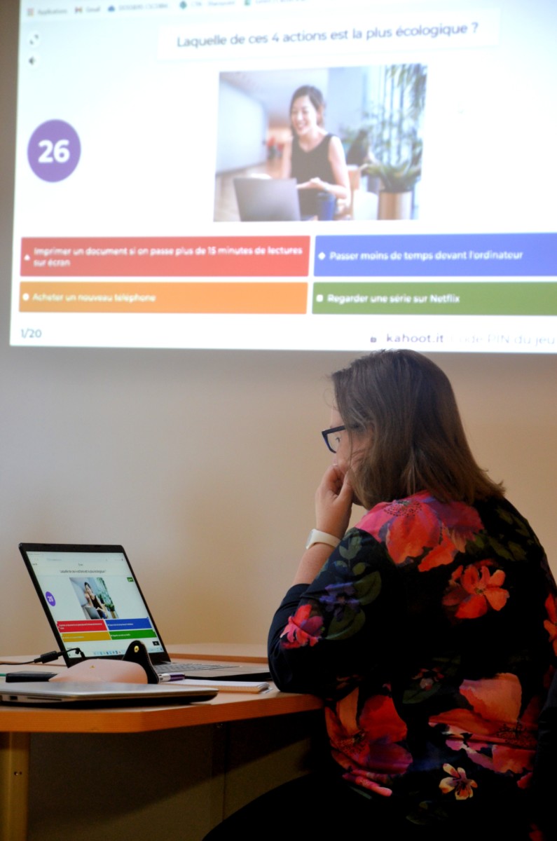Valentin et Fanny du projet Centres Sociaux Connectés, dans lequel est inscrit la MQCV, ont animé un atelier de sensibilisation par l’action à l’empreinte environnementale du numérique qui a rassemblé 5 habitants et 5 salariés.