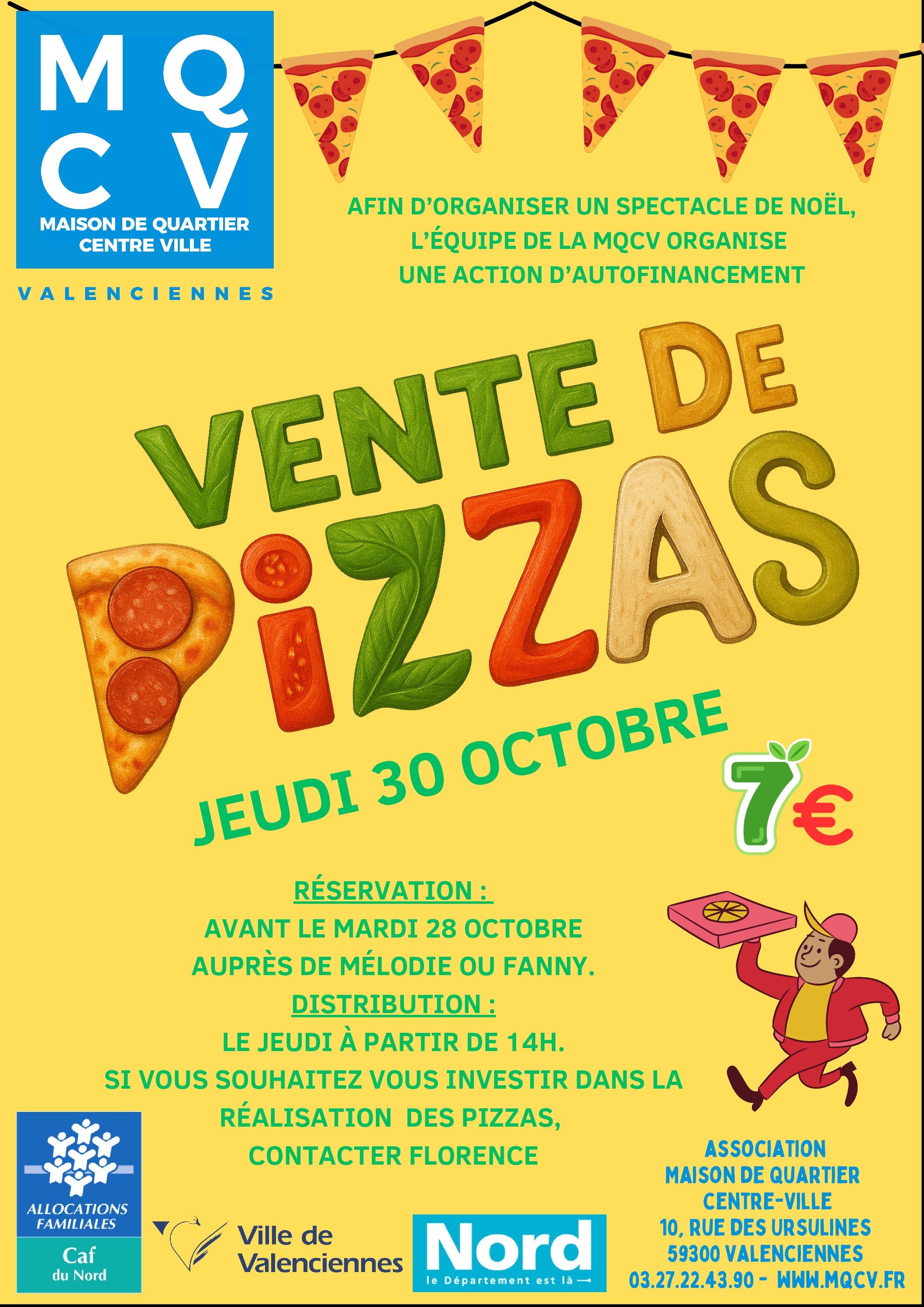 Pour financer le spectacle de Noël, la MQCV organise une vente de pizzas à 7 € l’unité le jeudi 30 octobre.