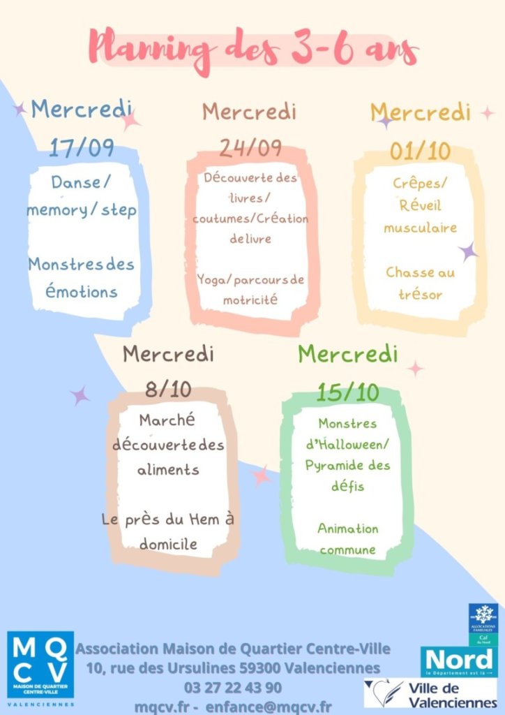 Projet pédagogique de l’accueil de loisirs 3-11 ans des mercredis et Planning des activités de septembre et octobre.