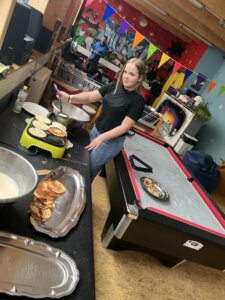 Parmi les temps forts de ces actions, l’organisation d’une table en fête à la Maison de Quartier. Pendant deux jours, parents et jeunes ont uni leurs forces, tabliers noués et sourires aux lèvres, pour préparer et servir un repas complet à 38 personnes : entrées, plats, desserts, boissons, service à table, débarrassage et vaisselle. Chacun a mis la main à la pâte. Cette mobilisation témoigne de la disponibilité et de l’engagement de plusieurs parents, qui ont donné de leur temps et de leur énergie pour soutenir le projet des jeunes.